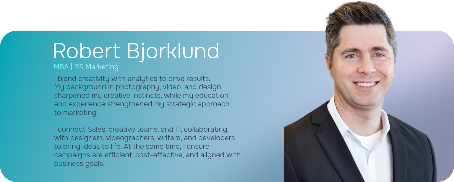 I blend creativity with analytics to drive results. My background in photography, video, and design sharpened my creative instincts, while my education and experience strengthened my strategic approach to marketing. I connect Sales, creative teams, and IT, collaborating with designers, videographers, writers, and developers to bring ideas to life. At the same time, I ensure campaigns are efficient, cost-effective, and aligned with business goals.